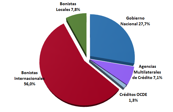 La Deuda de la Provincia al 31 de Marzo de 2016 ascendia a $153.347,3 millones, equivalente a USD 10.431,8 millones ( utilizando el tipo de cambio a esa fecha de ARS 14,70=USD 1).