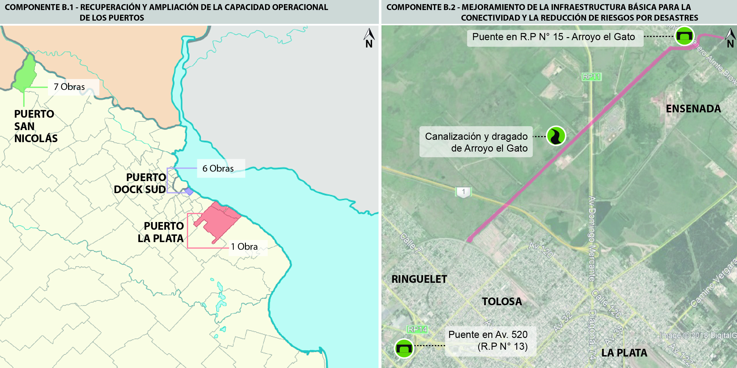 La Plata/San Nicolás: Ensanche de canales; pavimentación de accesos y playas; reparación de vías y grúas.